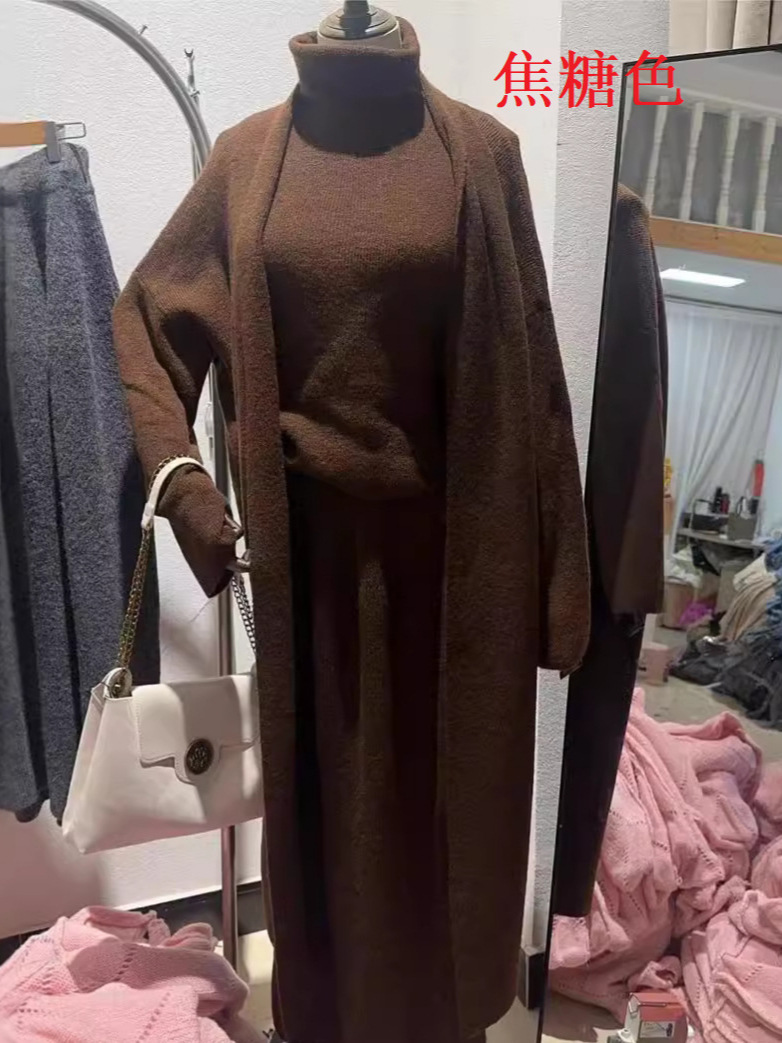 The New Knitted Three-Piece Set Is Paired with a Set of 2025 Autumn and Winter Women's Turtleneck Vest and Skirt. Temperament and Fashionable Suit