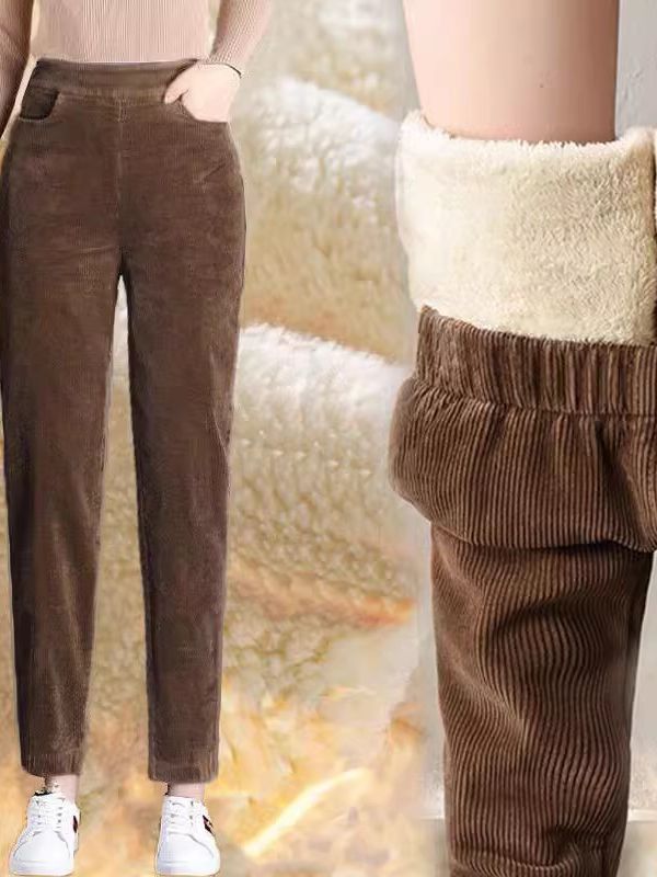 Thick corduroy harem pants women's autumn and winter women's fleece-lined pants new popular cropped casual women's pants radish pants