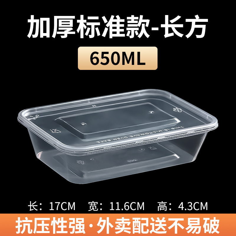 加厚长方形650一次性餐盒塑料水果保鲜盒外卖打包盒便当快远三