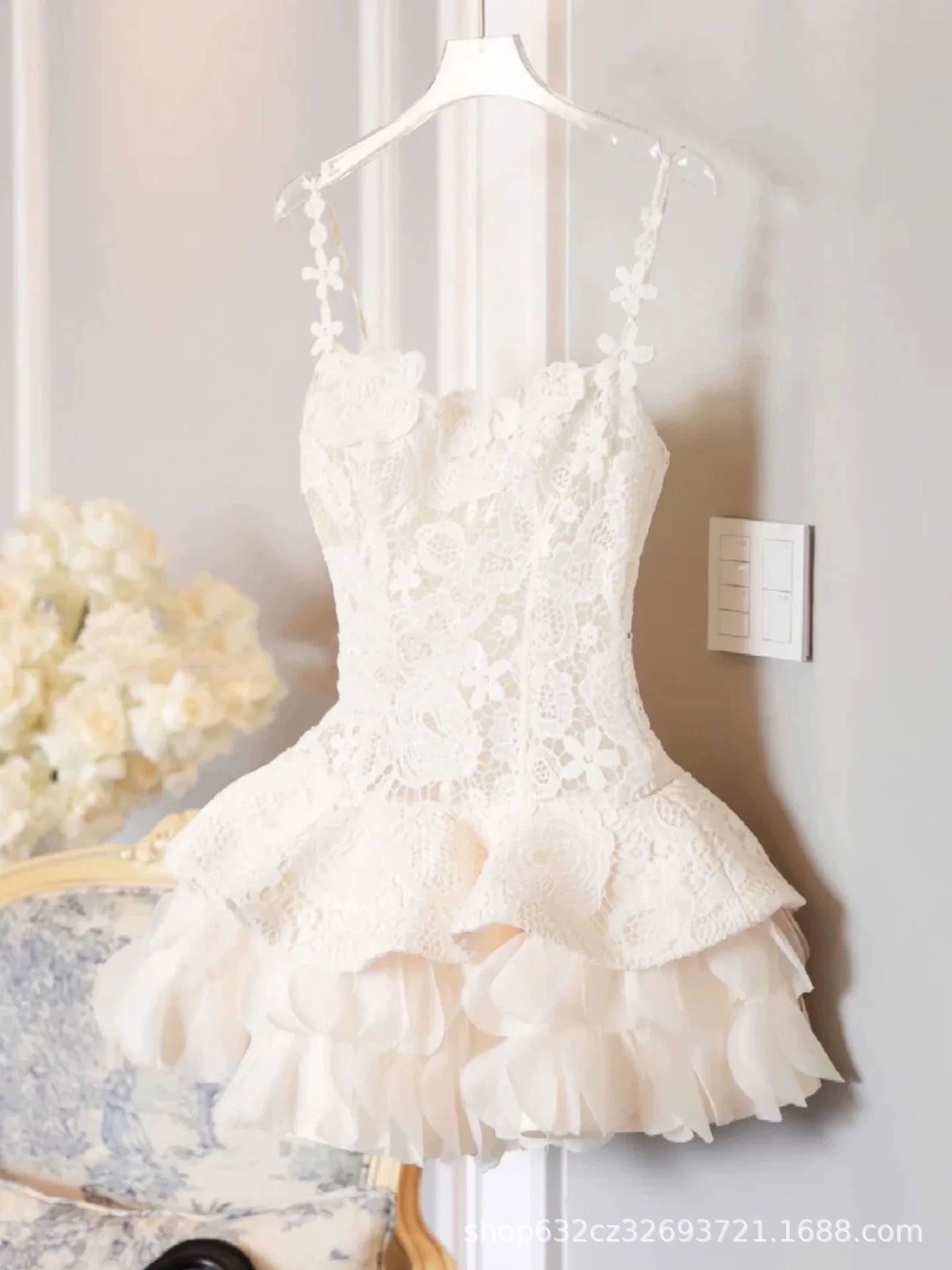 This Year's Popular Beautiful and Stylish Suspender Dress for Women, High-End Light Luxury Lace Embroidered Birthday Party Dress