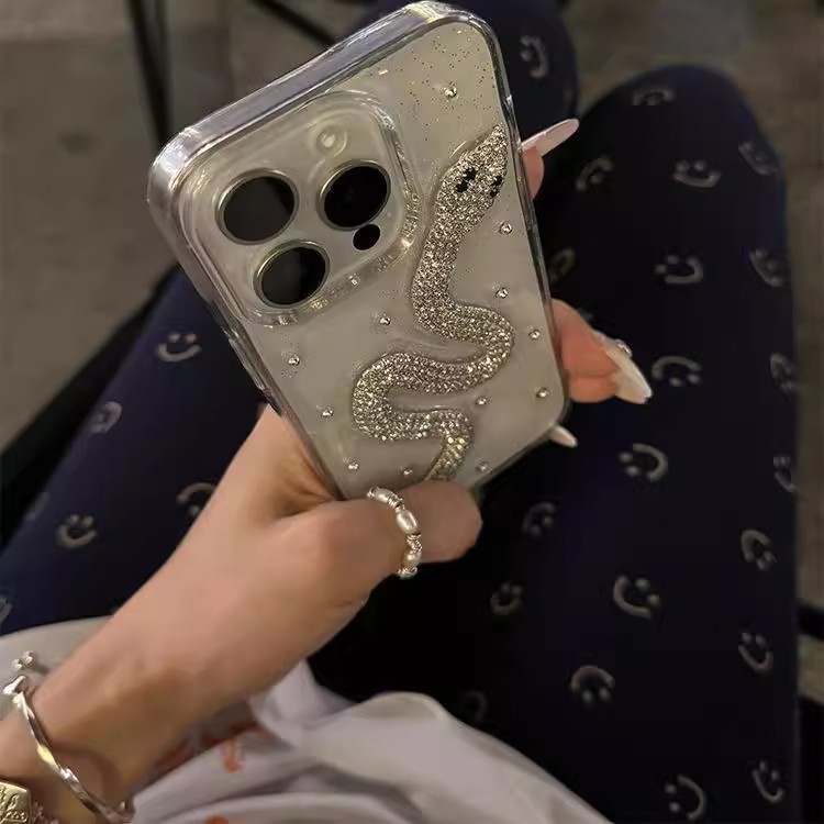 Three-Dimensional Full Diamond Snake Glue Suitable for Apple 16Pro Mobile Phone Case Iphone15/14Promax Female New 13 Soft