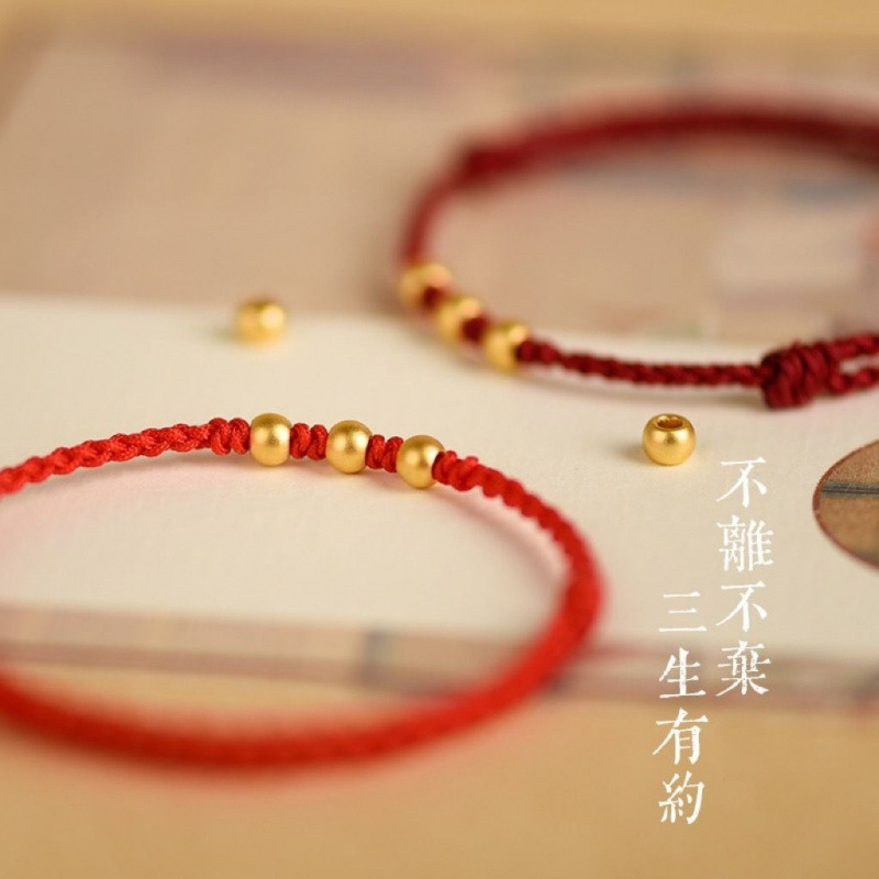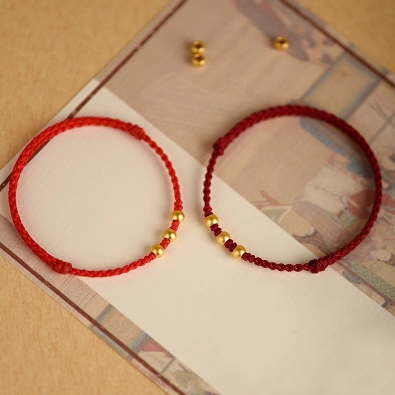 Three Lives Three Worlds Peace and Good Luck Beads Couple Bracelet Women's Hand-Woven Zodiac Year Red Rope New Red Bracelet