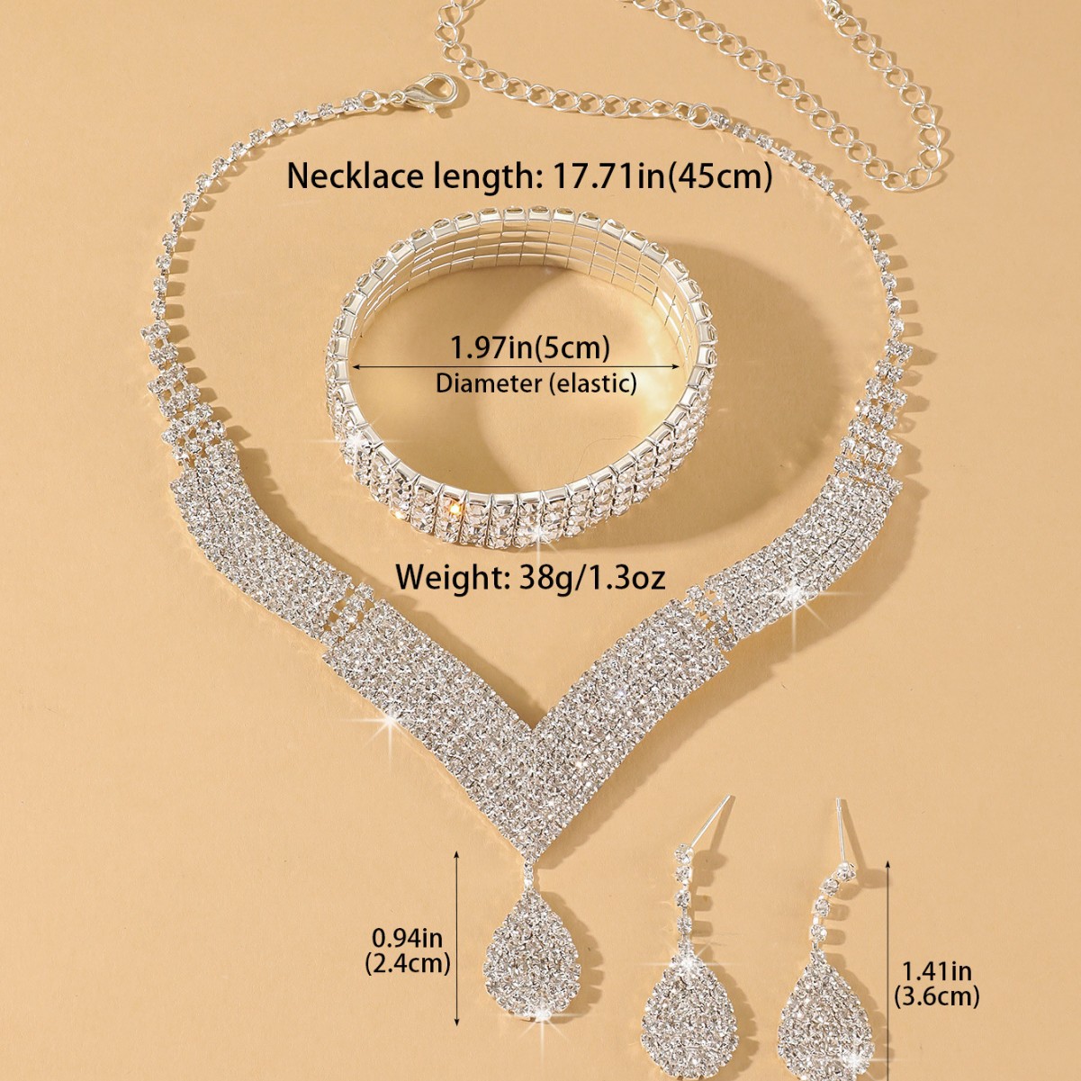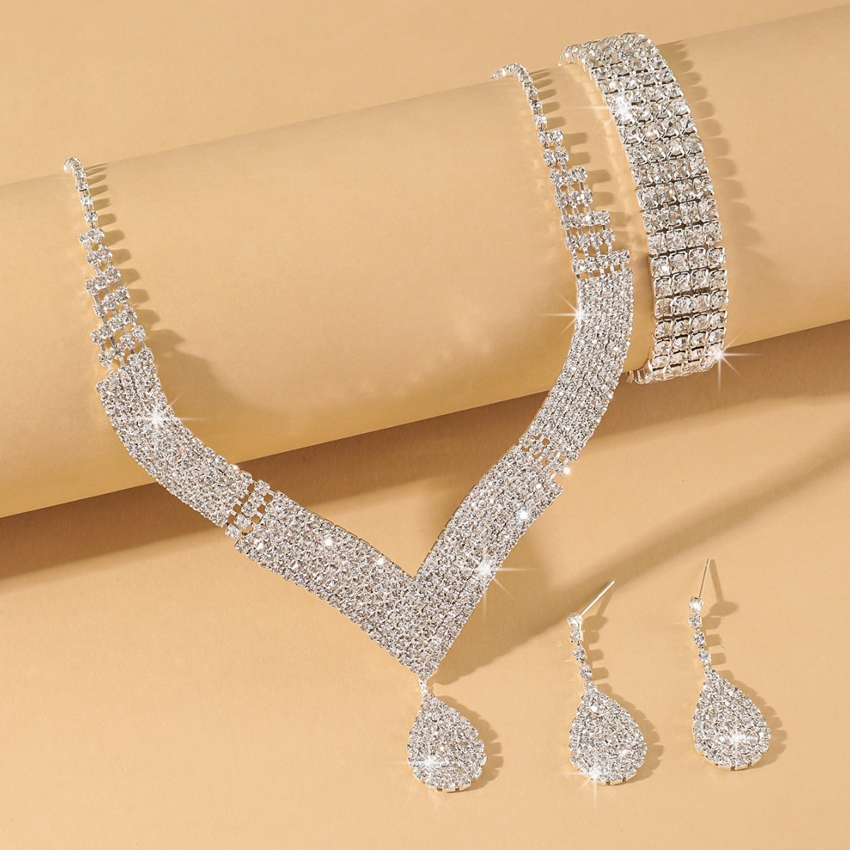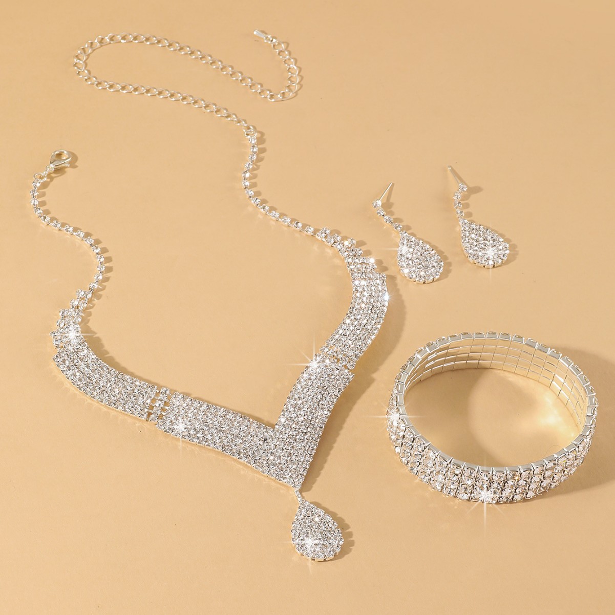 Three-piece supply elegant luxury shiny rhinestone necklace earrings suit bridal jewelry love pendant ear