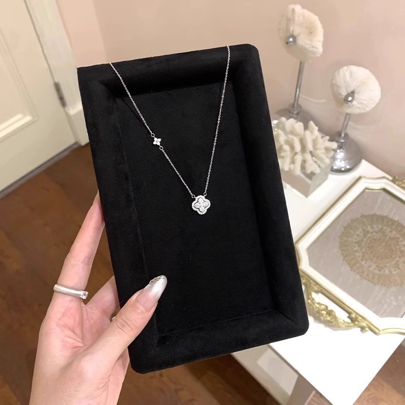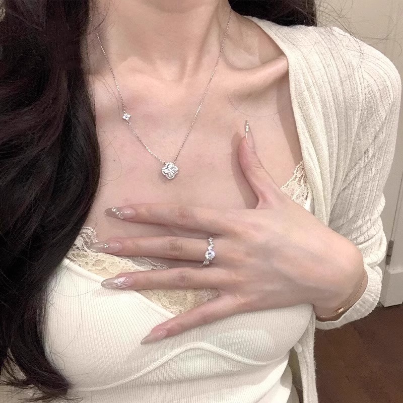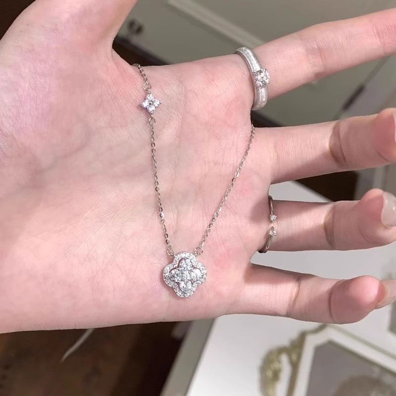 Titanium Steel Non-Fading Korean Style Four-Leaf Clover Necklace Jewelry Women's Light Luxury Niche High-End Zircon Pendant Clavicle Chain