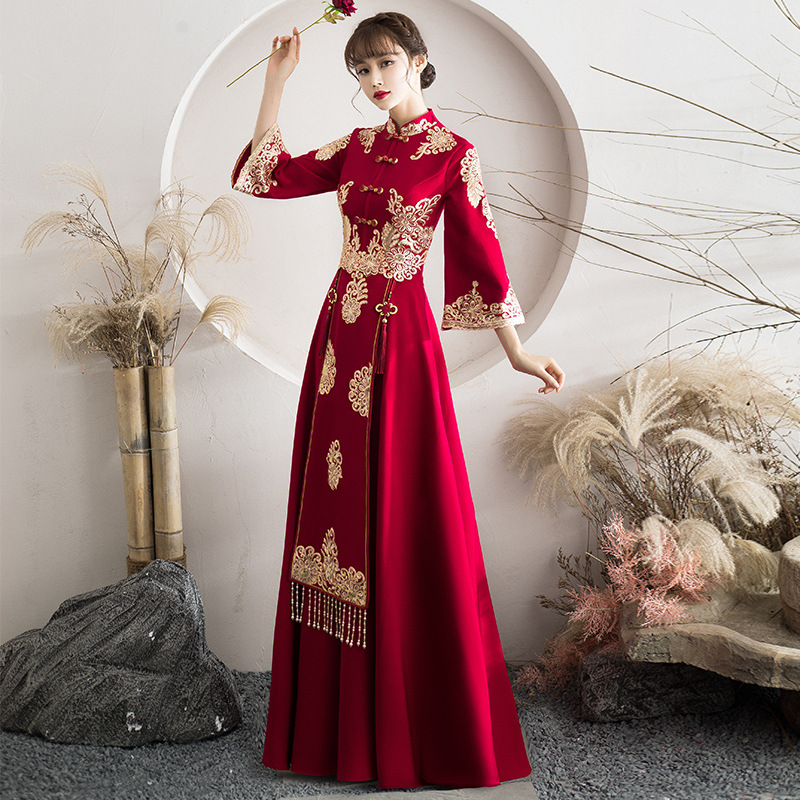 Toast Wear Bride Chinese Style 2025 New Summer High-End Red Cheongsam Long Sleeve Xiuhe Wedding Dress Women