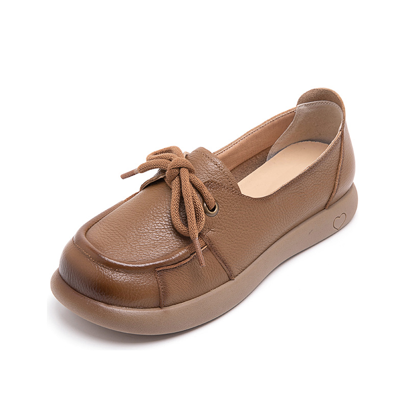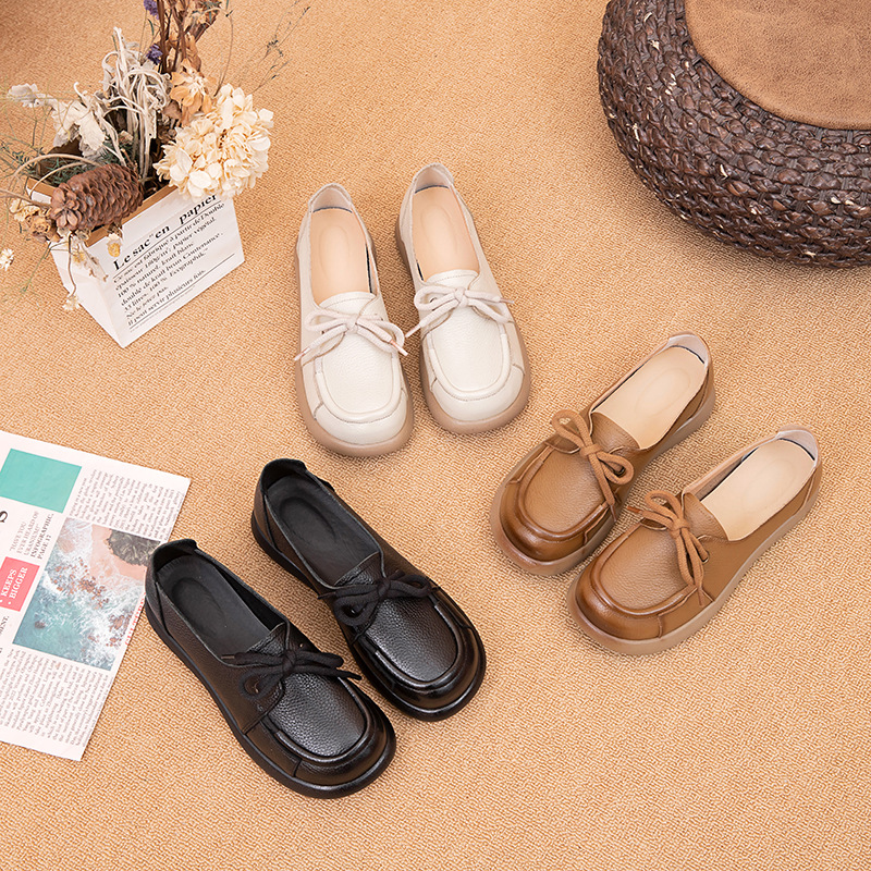 Top layer cowhide Four Seasons super soft bottom shallow mouth famous ethnic style pregnant women's shoes non-slip Tods flat women's shoes mother's shoes