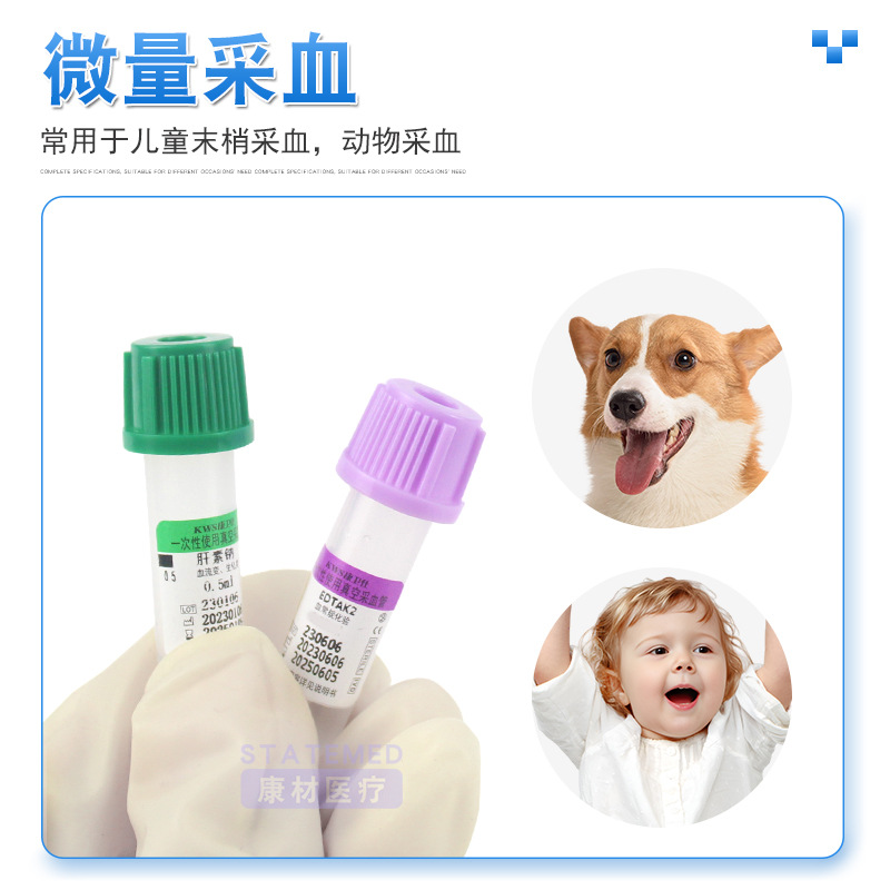 Kang Weishi micro blood collection tube 0.5/1ml anticoagulant tube edta heparin sodium lithium purple cap blood routine tube for pets