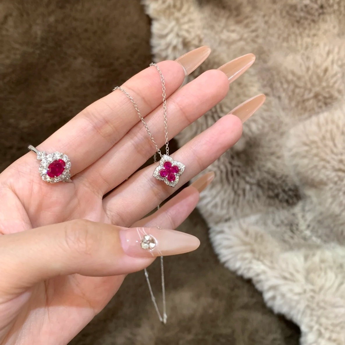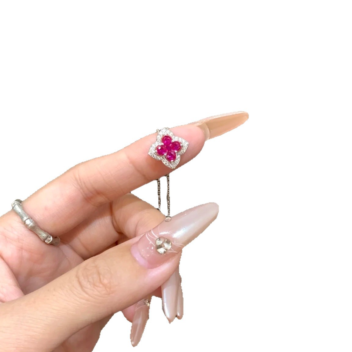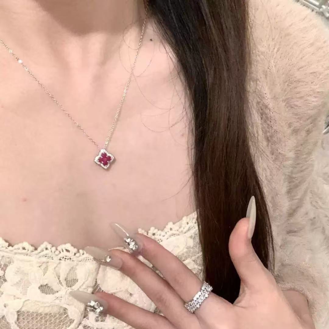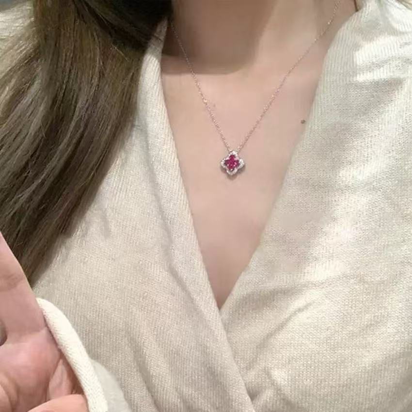 Transfer Sparkling Diamond Ruby Four-Leaf Clover Necklace Women's Accessible Luxury Niche High-End Inlaid Full Zirconium Petal Pendant Clavicle Chain