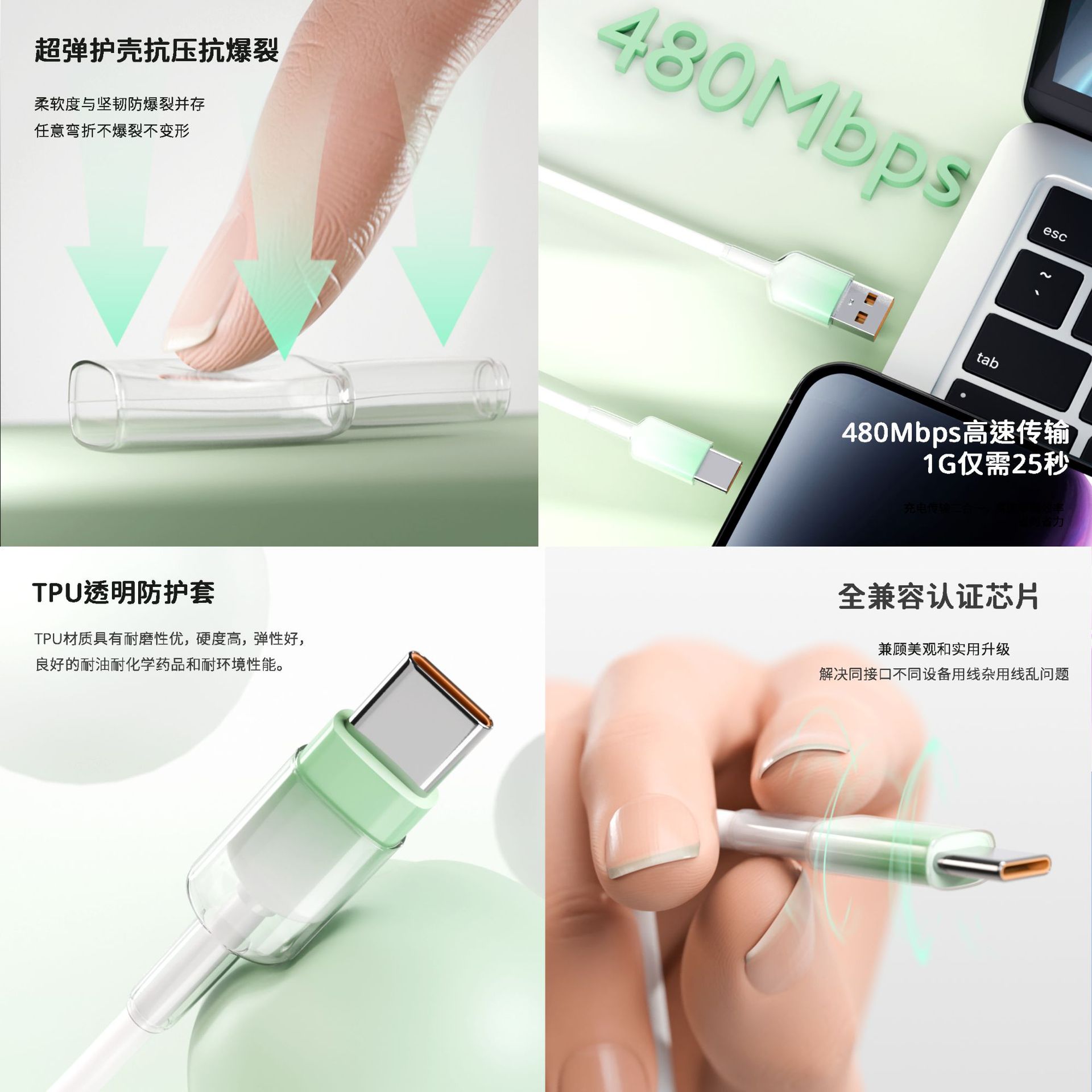 Transparent Ice Crystal Gradient 6A Fast Charging Data Cable Type-C Interface Suitable for Huawei Apple Mobile Phone Android Charging Cable