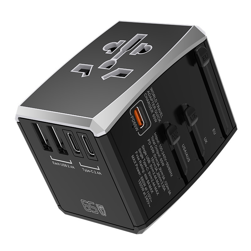 Travel abroad adapter PD65W fast charging multi-function conversion plug export multi-country plug converter