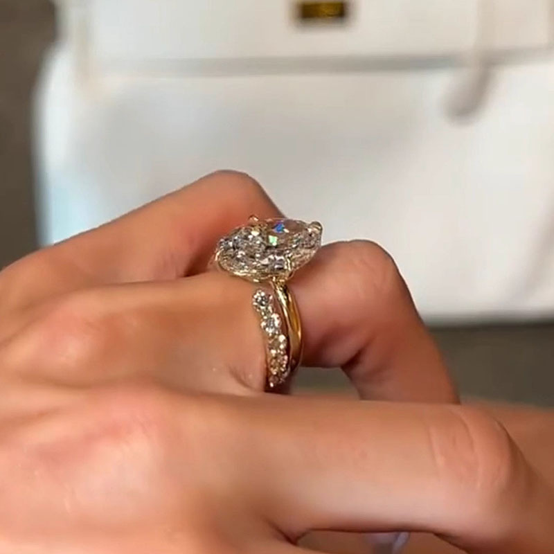 Trendy European and American Style Stacked Diamond Rings Oval Pigeon Sparkling Diamond Rings Light Luxury Wholesale