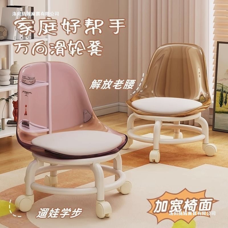 Trendy Household Silent Swivel Small Chair with Acrylic Wheels, Low Stool for Children Learning to Walk, with Movable Backrest