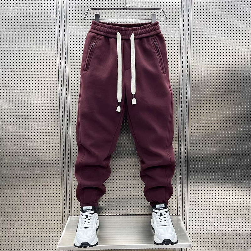 Trendy Thickened Pants for Men, Spring and Autumn Jogger Sweatpants, Solid Color Men's Casual Loose Harem Pants, Fashionable