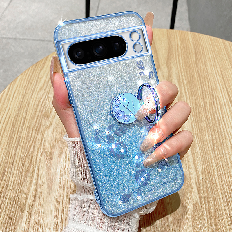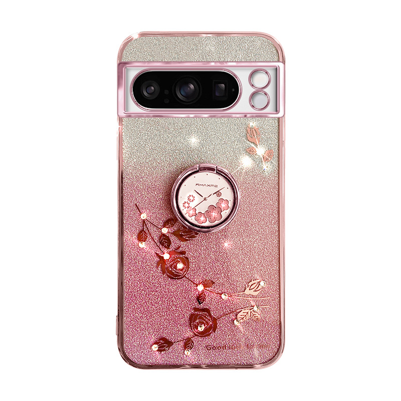 Gradient Immortal Flower Bracket Lanyard Rack Anti-Drop High-Level Protective Case for Google Pixel 9PRO Phone Case