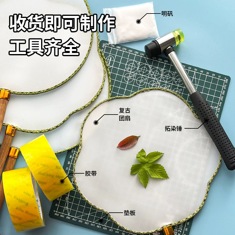 Tuo dyed round fan material suit student diy canvas square pad hammer tape alum wholesale rubbing fan