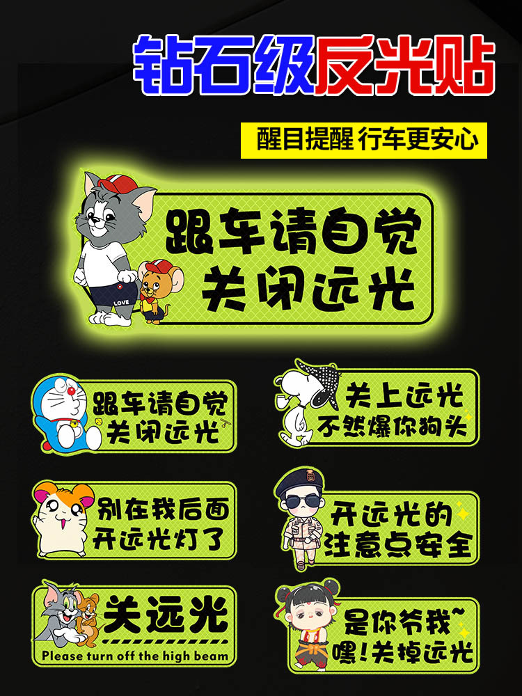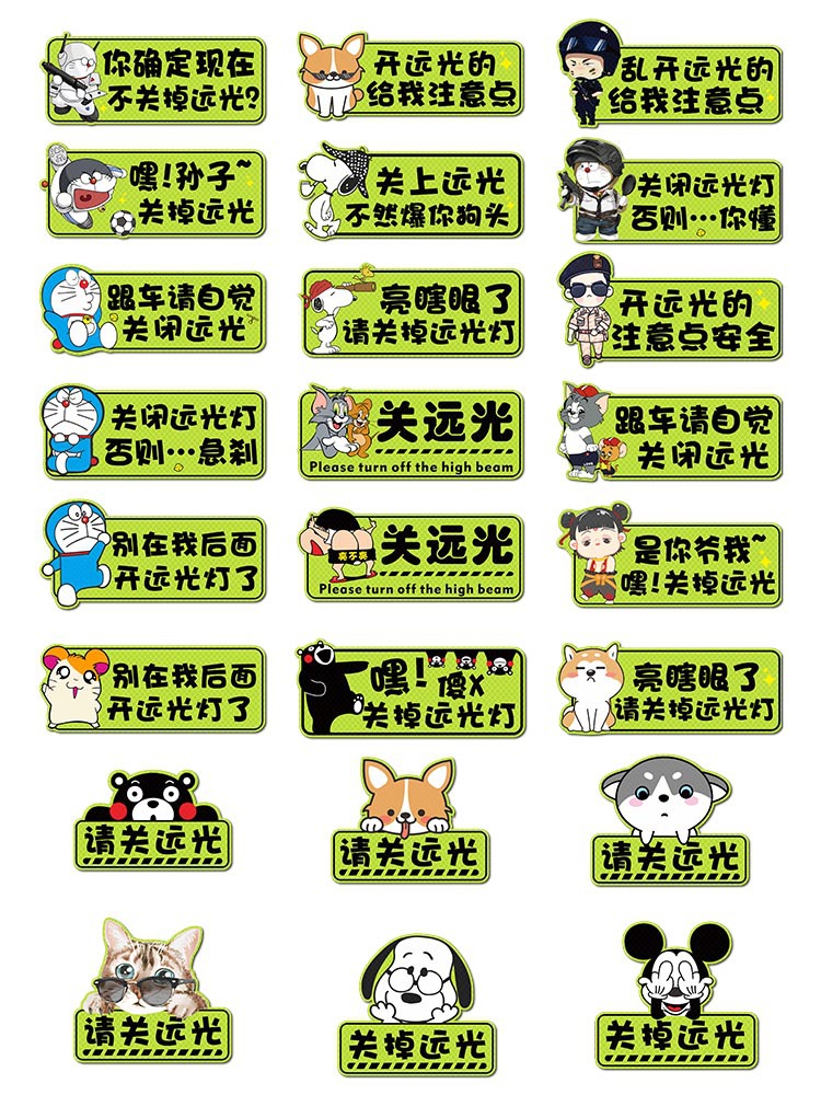 Turn off the high beam reflector cartoon bright blind l creative personality block scratch car warning car sticker