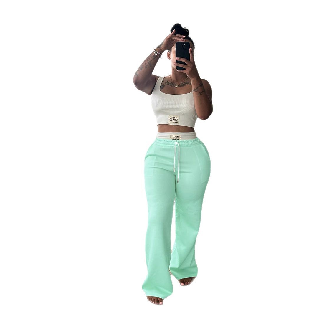TW693-1 cross-border European and American fashion design label sports vest women's high waist drawstring wide leg pants suit Yama