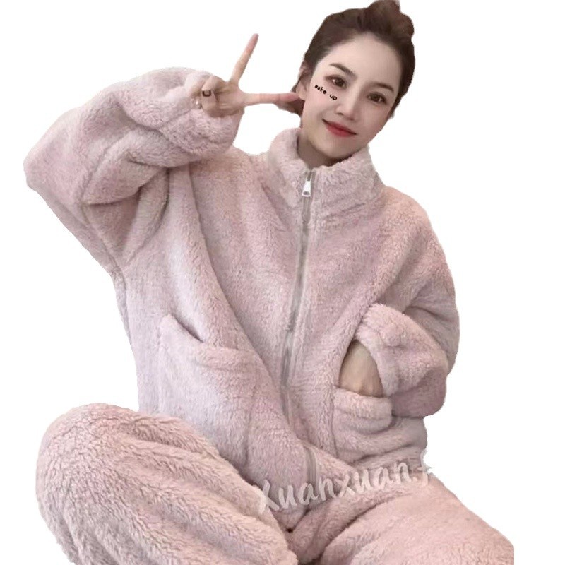 Two-Piece Set Thickened Double-Sided Coral Fleece 2025 Winter New Hooded Loungewear Set for Women Versatile Casual Jacket