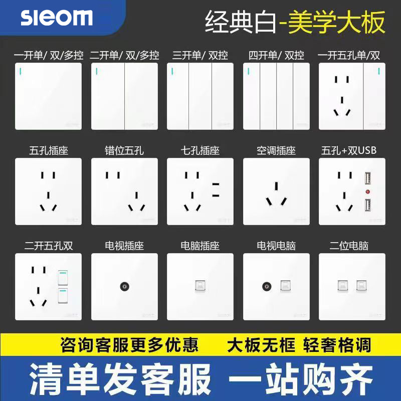 Type 86 Wall White Switch Socket Household Dual Control Dual Five-hole Socket Multi-control Switch Large Board Elegant White Panel
