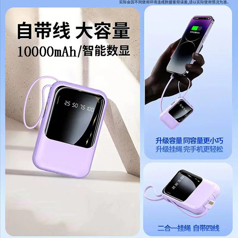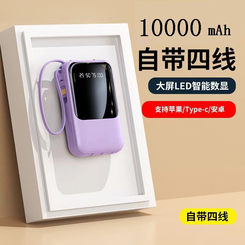 Extra-Large Capacity 10,000 Mah Portable Power Bank with Built-In Four-Wire Charging Cable, Mobile Power Supply, Gift Printing Available
