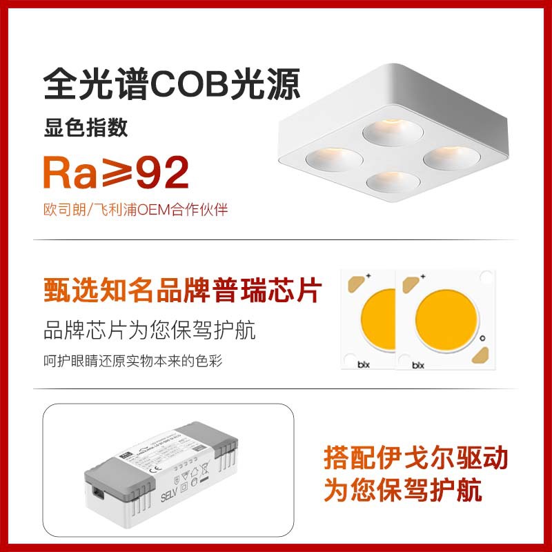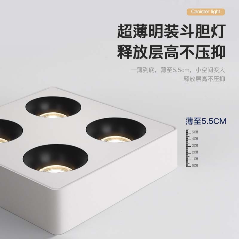 Ultra-Thin Full-Spectrum Surface-Mounted Anti-Glare Downlight Living Room Bedroom Smart Four-Head Square Spotlight Bucket Lamp