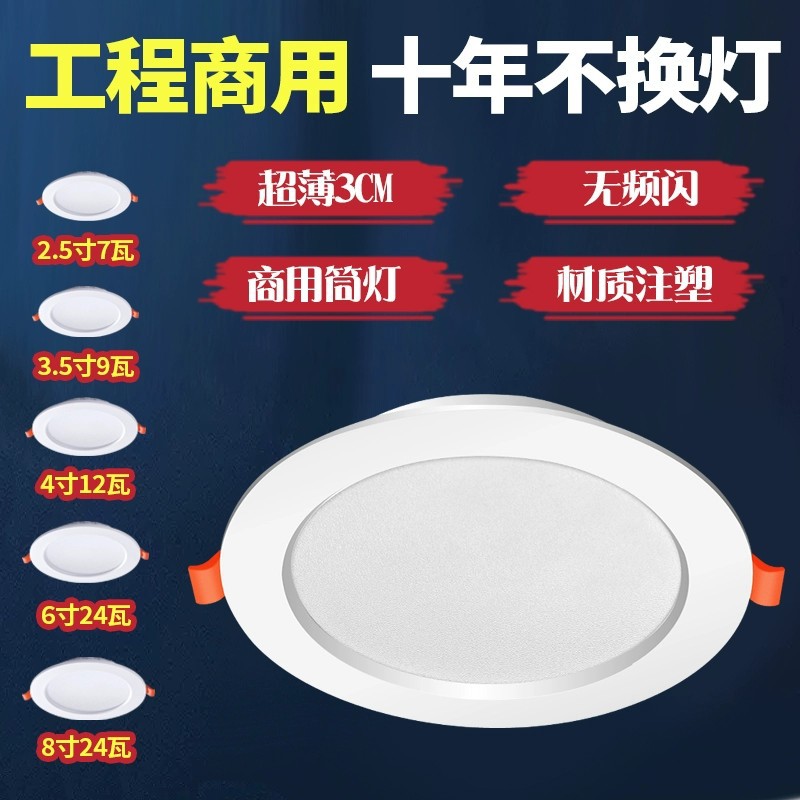 Ultra-Thin Hole Light Led Downlight Embedded 4-Inch 15W Opening 12cm Household 7W6-Inch 18W Commercial 24W Ceiling Light