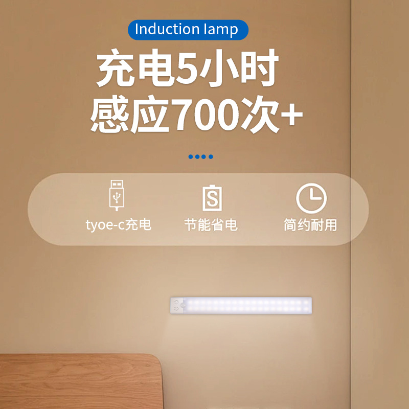 Ultra-thin led intelligent human body induction lamp long strip kitchen wardrobe bedroom wine cabinet cabinet lamp with charging night light