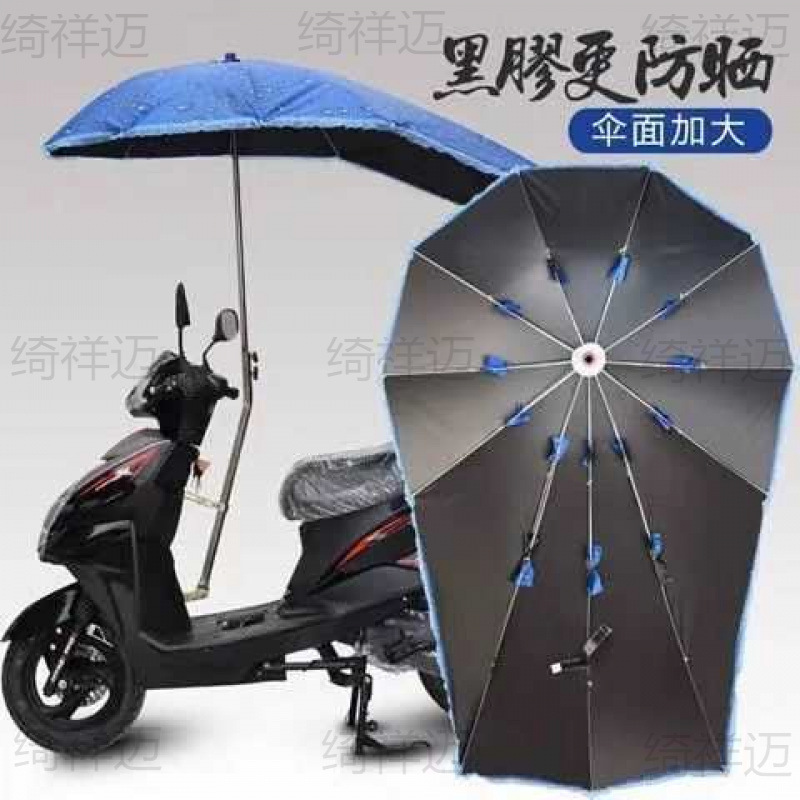Umbrella with Sun Protection, Foldable, Rainproof, Thickened Black Coating, with Stand, Electric Scooter Umbrella, Extended Sunshade Umbrella