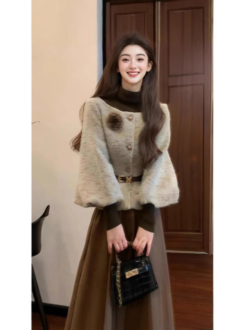 Unique and Beautiful Suit for Ladies with Elegant, 2025 New Winter Thickeneded Jacket and Skirt, a Complete Set of Women's Clothing