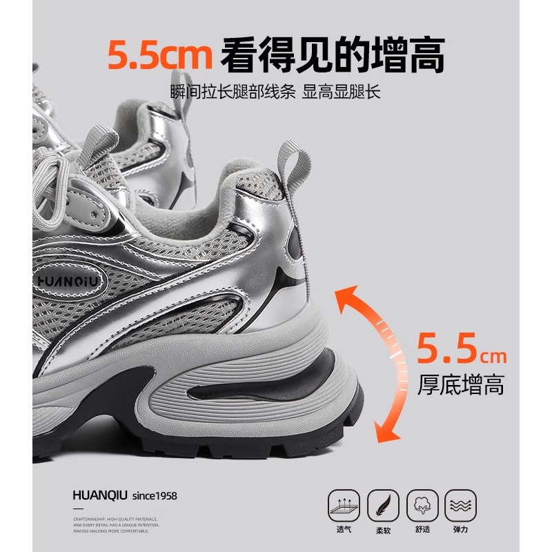 Universal Thick-Soled Silver Fleece-Lined Dad Sneakers for Women, 2025 New Autumn and Winter Height-Increasing Versatile Popular Winter Sports Shoes