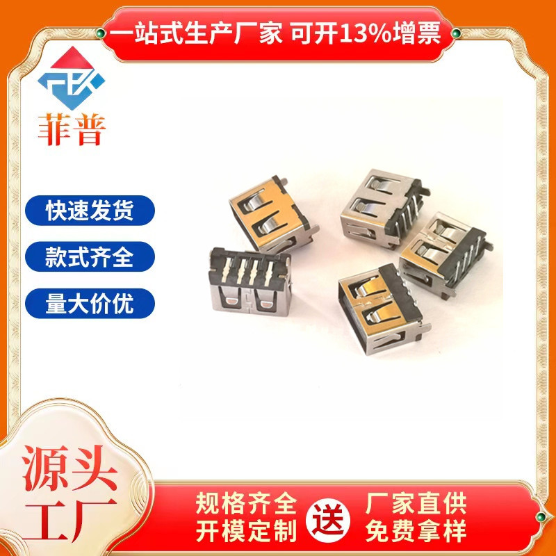 Usb af2.0 female base 5p high current 180 degree vertical plug-in board dip short body 10.0mm orange rubber core straight