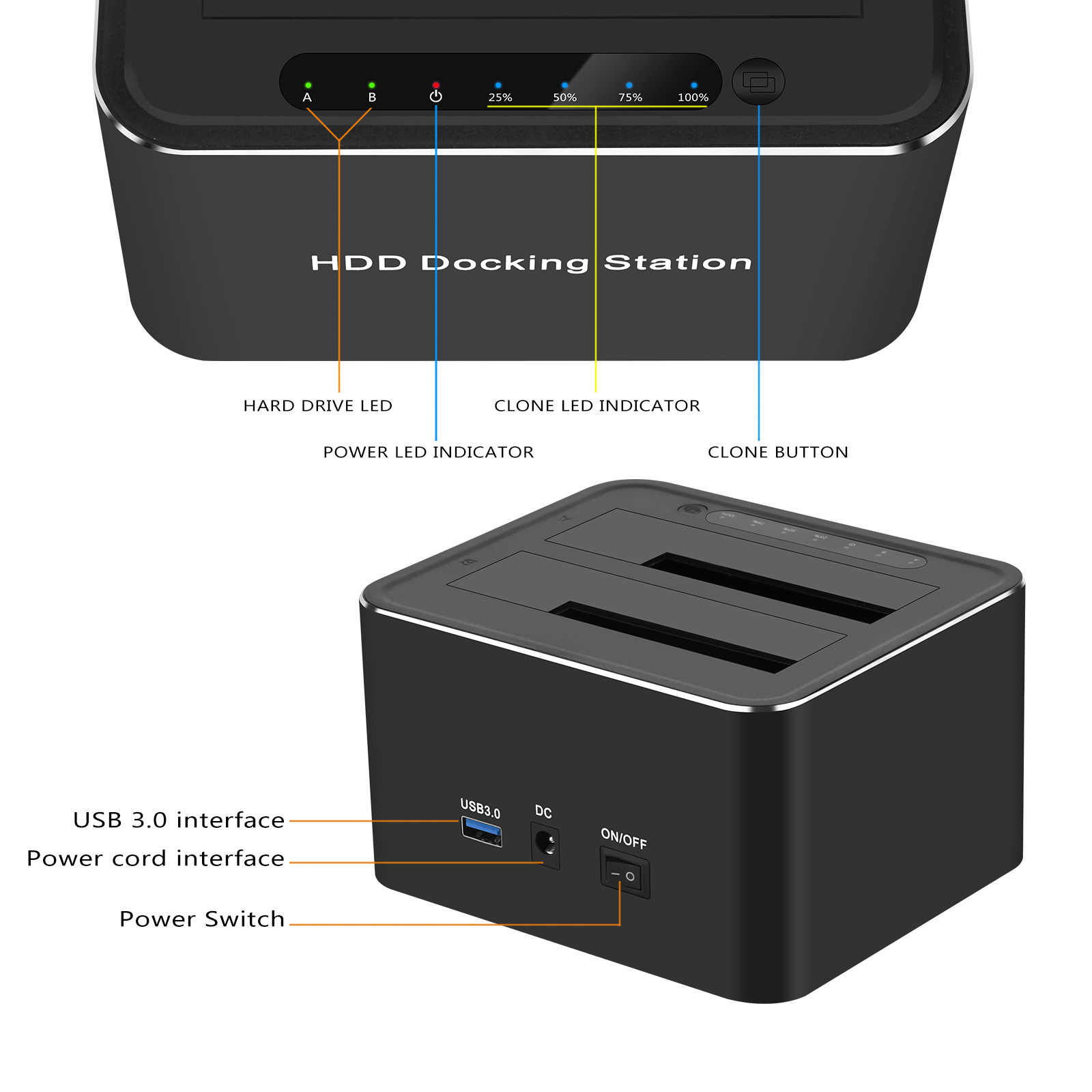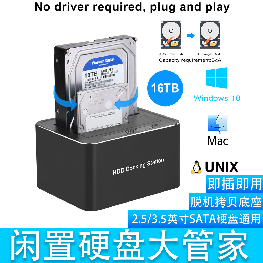 Usb3.0 Sata Dual Hard Drive Dock Aluminum Alloy Case Offline Cloning Machine Supports 32Tb Memory
