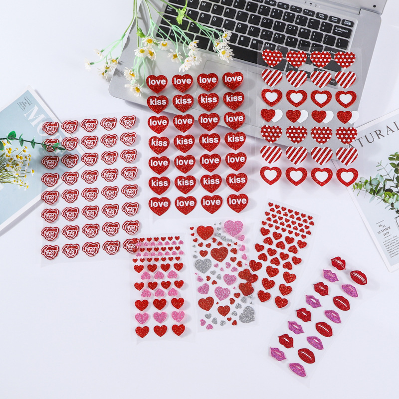 Valentine's Day Glitter Stickers, Valentine's Day Stickers, Gold Powder Stickers, Heart Stickers, DIY Stickers with Custom Printed Logos
