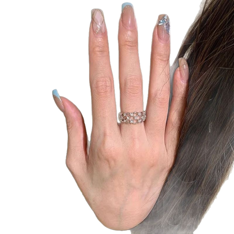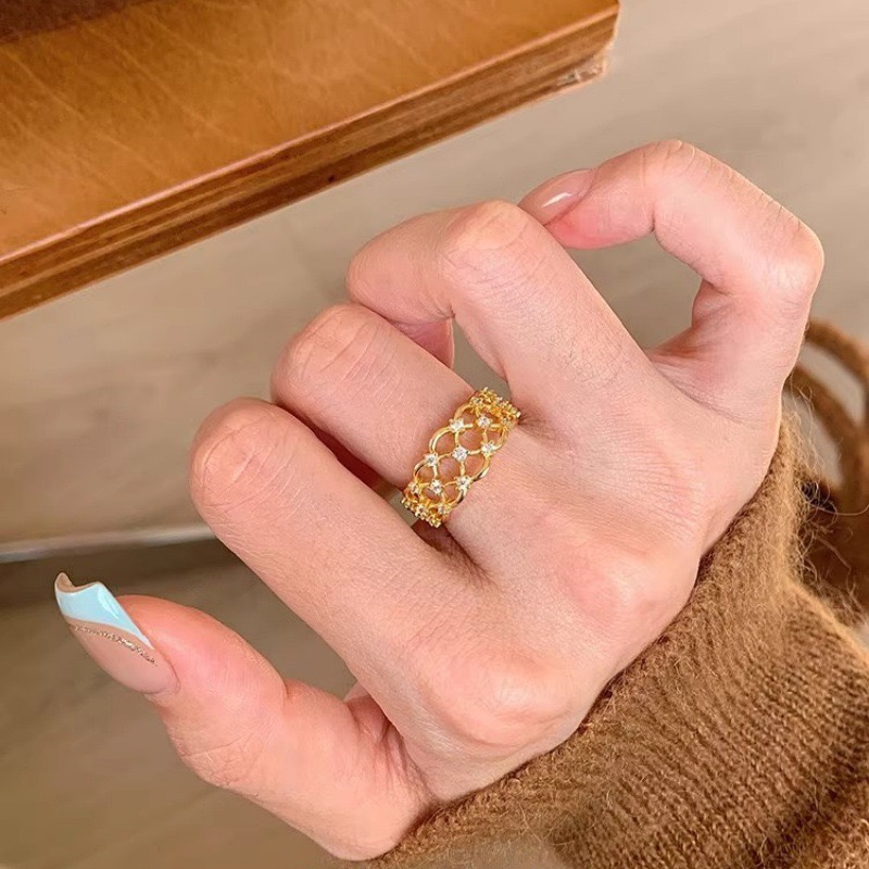 Vintage French-Style Light Luxury Hollow Lace Starry Sky Diamond Ring for Women, Elegant and Sophisticated Personality Open Ring