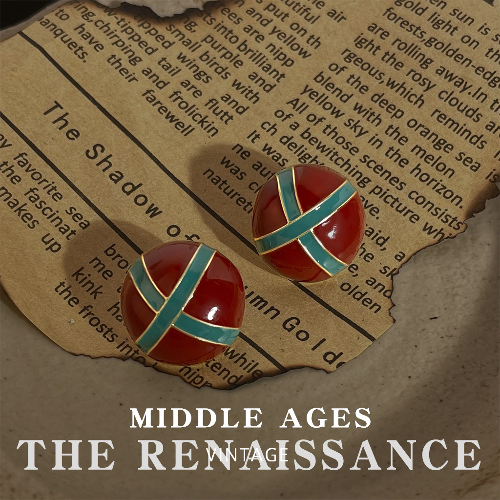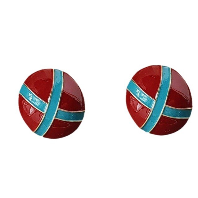 Vintage Mid-Century Style Burgundy Enamel Drip Glaze Earrings Collection Retro French Style Earrings Hong Kong Style High-End Earrings