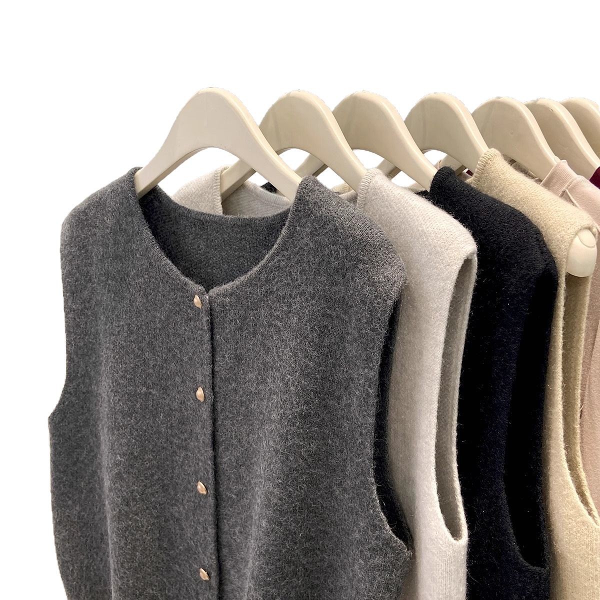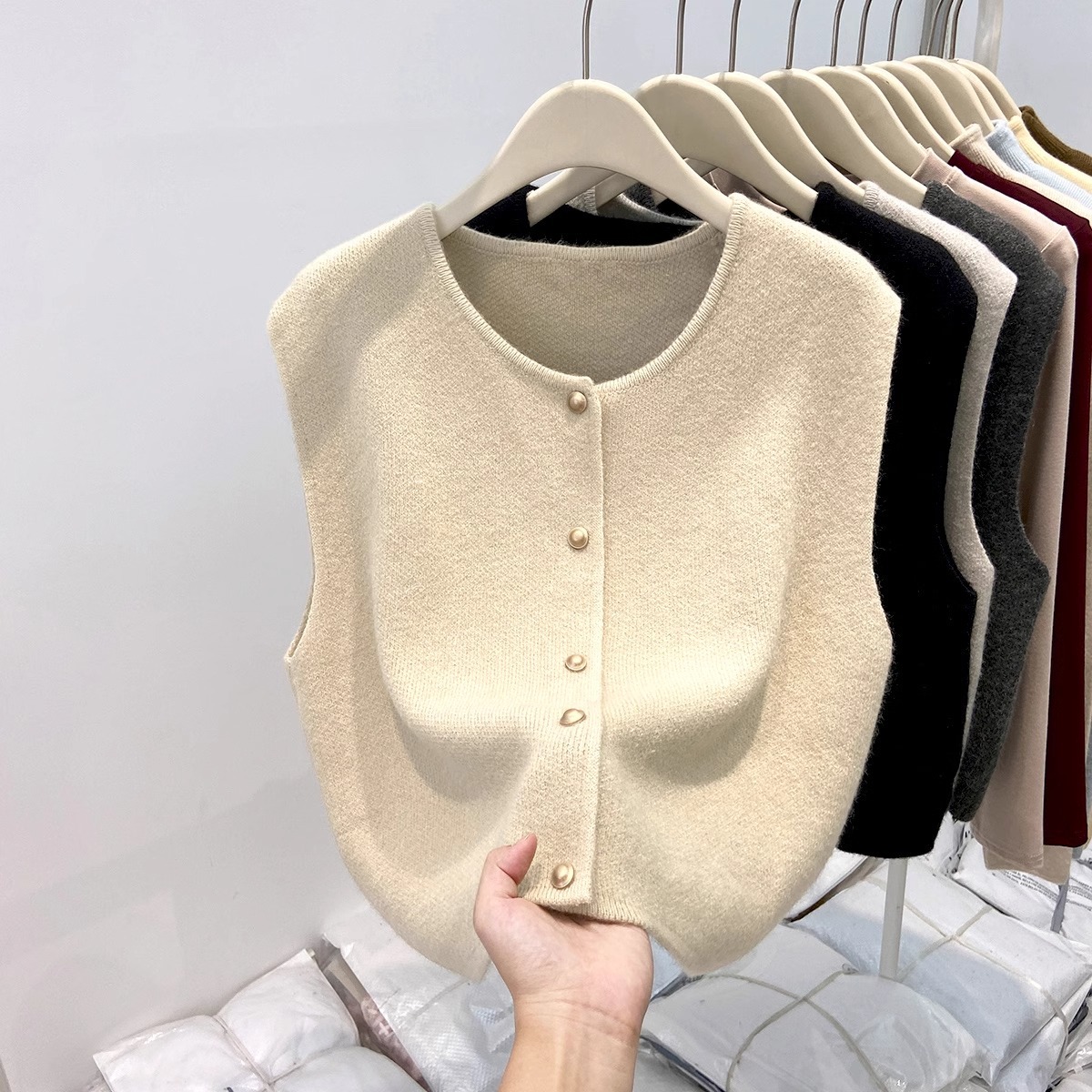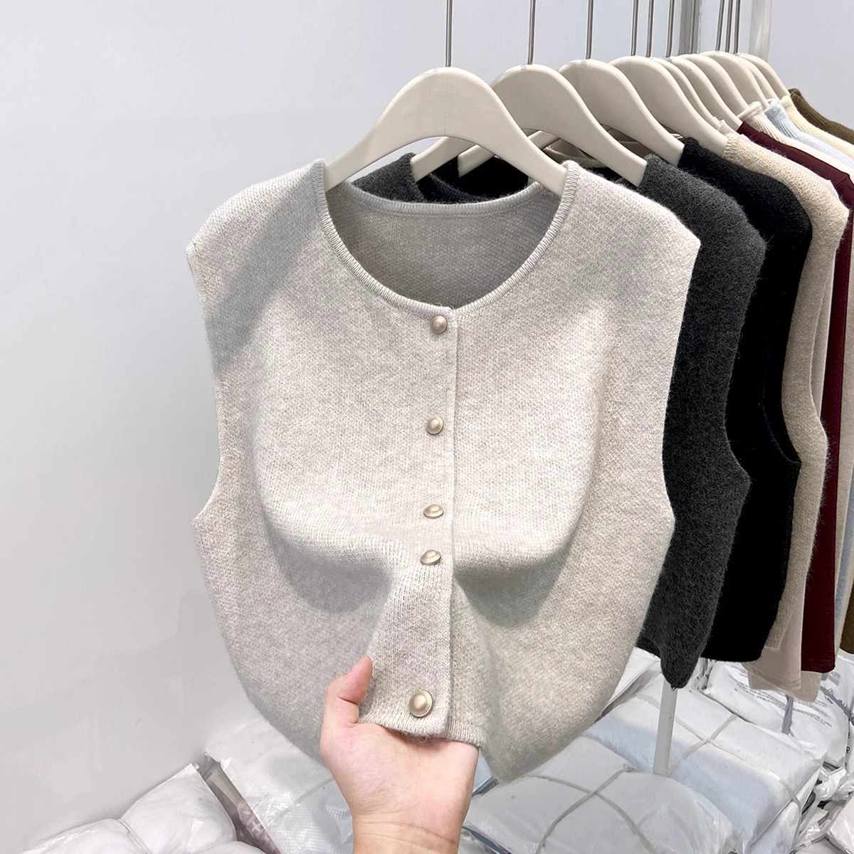 Vintage Old Money Style Casual Stacked Round Neck Cardigan Vest Vest Women's Spring and Autumn Sweater Jacket Knitted Waistcoat