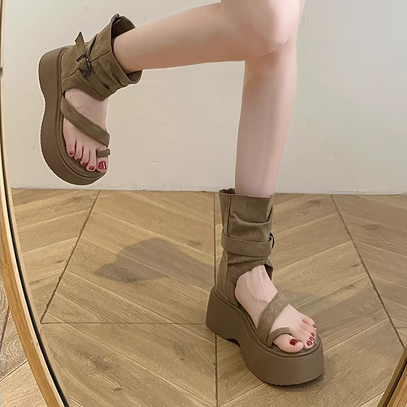 Vintage Thick-soled Roman Sandals Women's 2025 Summer New Fashion Set Toe High-top Sandals Heightened Rear Zipper Ankle Boots