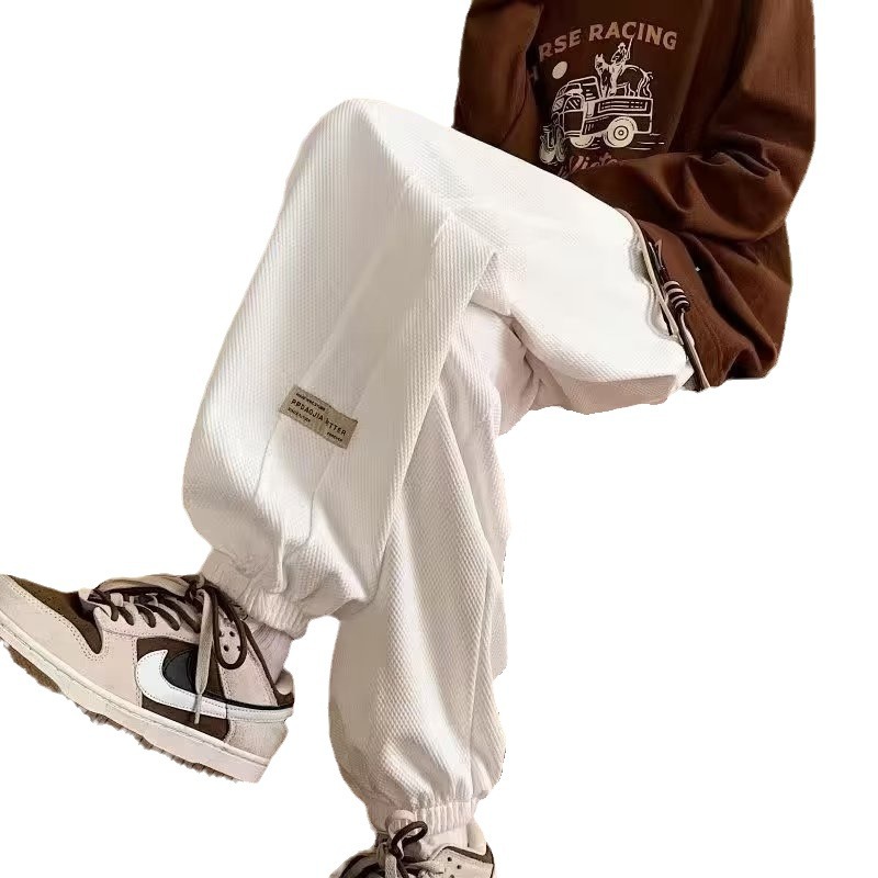 Waffles Pants Men's 2024 Autumn Fashion Brand Loose Nine-point Foot Sweatpants plus size Youth Casual Sports Pants