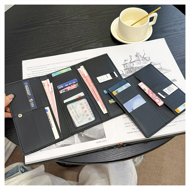 Wallet Stitching Large Three-fold Multi-card Bit Light Luxury Trend European and American Fashion Cross-border High-level Multi-function Leather Wallet