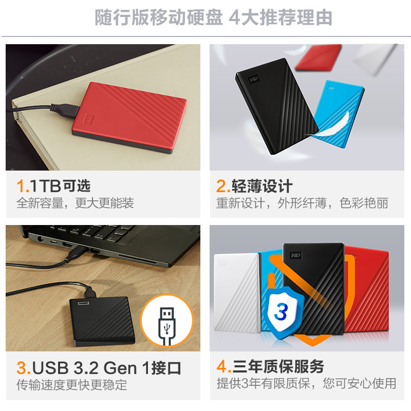 Wd Western Digital Bp Accompanying Version Portable External Usb3.0 High-Speed Encryption 1Tb 2t 4t 5t Mobile Hard Drive