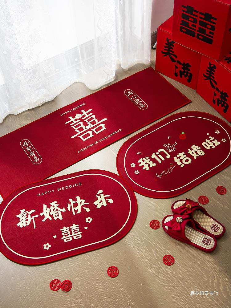 Wedding Room Decoration, Complete Set of Wedding Supplies, Double Happiness Character Floor Mat, Entrance Door, New House, Wedding Decoration Set, Carpet for Bride and Groom