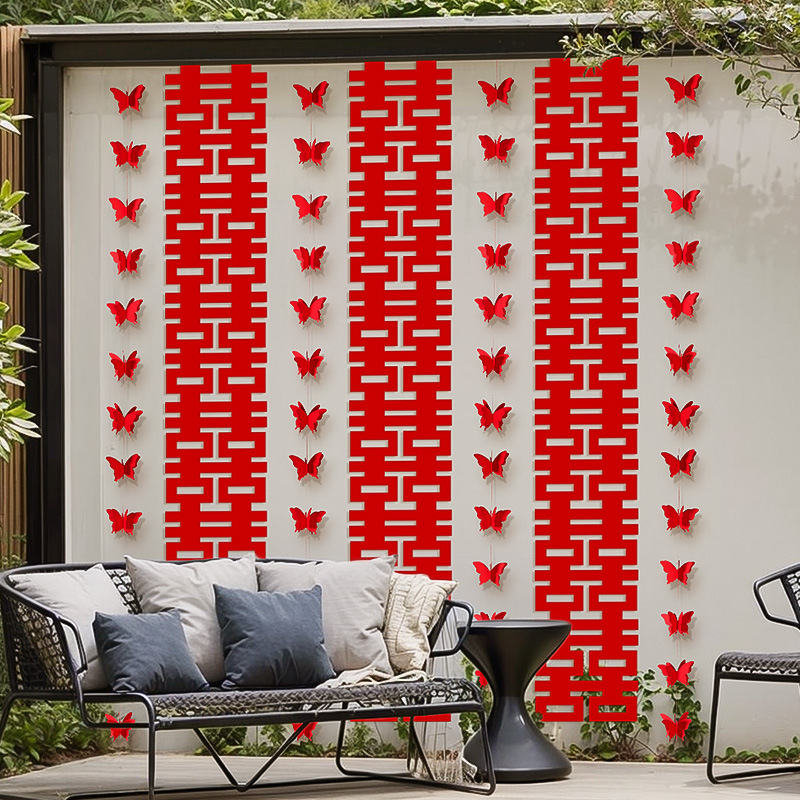 Wedding room layout suit rural yard decoration female man's wedding background wall happy characters long strip ornaments wedding flowers