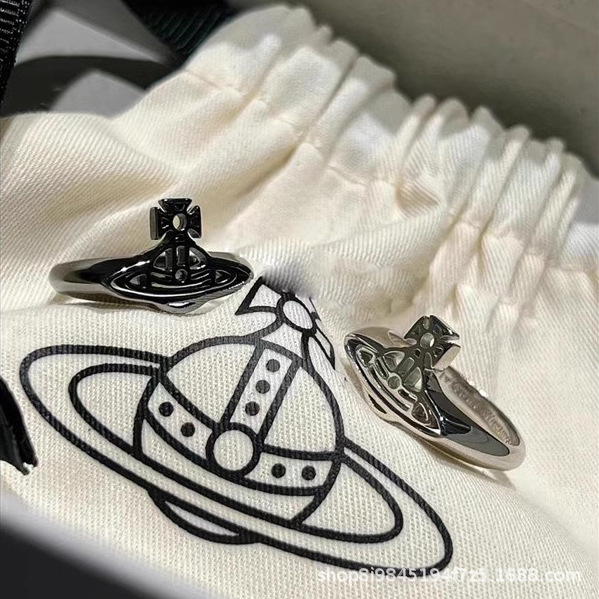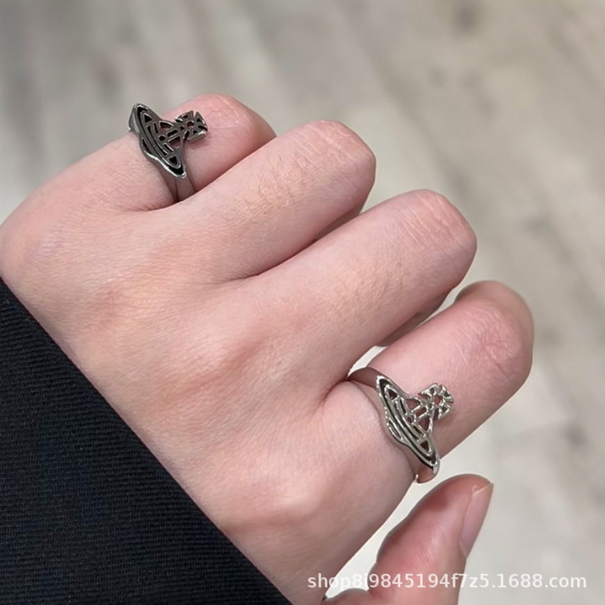 Western Queen Mother Vivian Line Hollow Saturn Ring Silver Black Exquisite Trendy Cool Men's and Women's Personalized Ring
