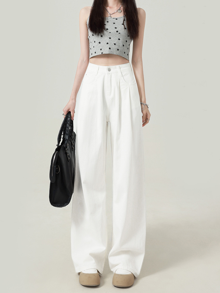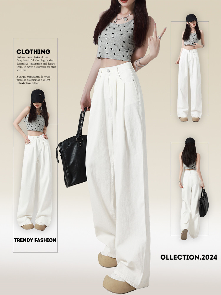 White High Waist Narrow Jeans Women's 2024 Autumn and Winter New Loose All-match Slim-fit Wide Leg Pants