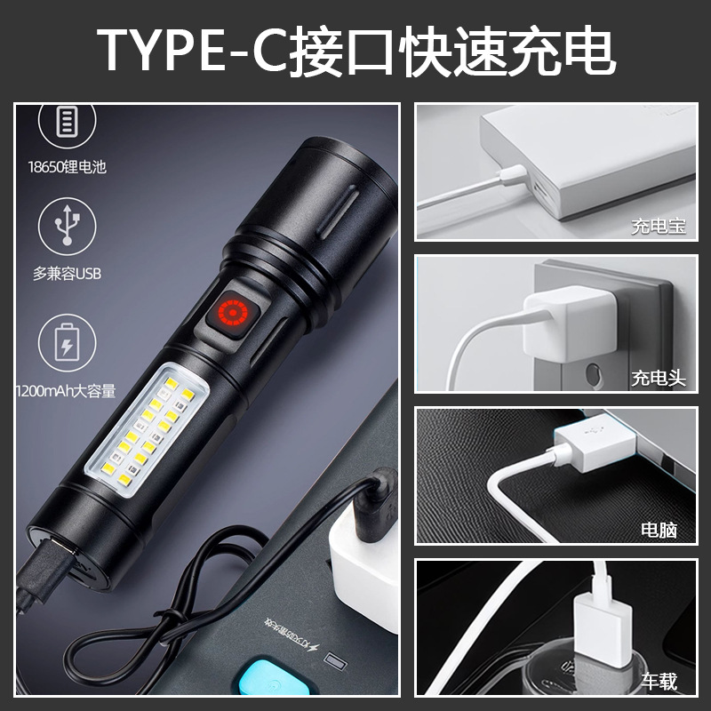 White Laser Aluminum Alloy Flashlight Telescopic Zoom Side Light Large Range Floodlight Red Light Warning Multi-Function Searchlight
