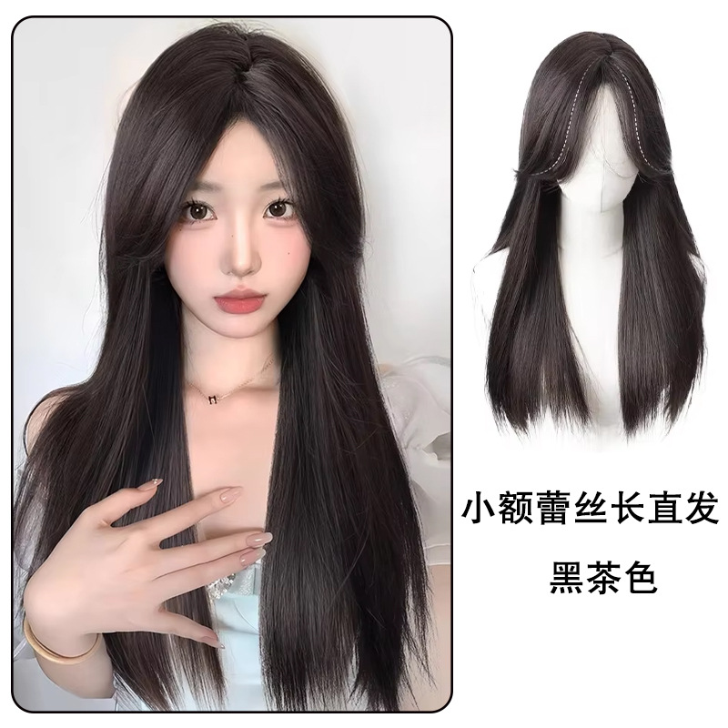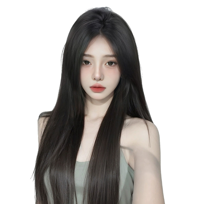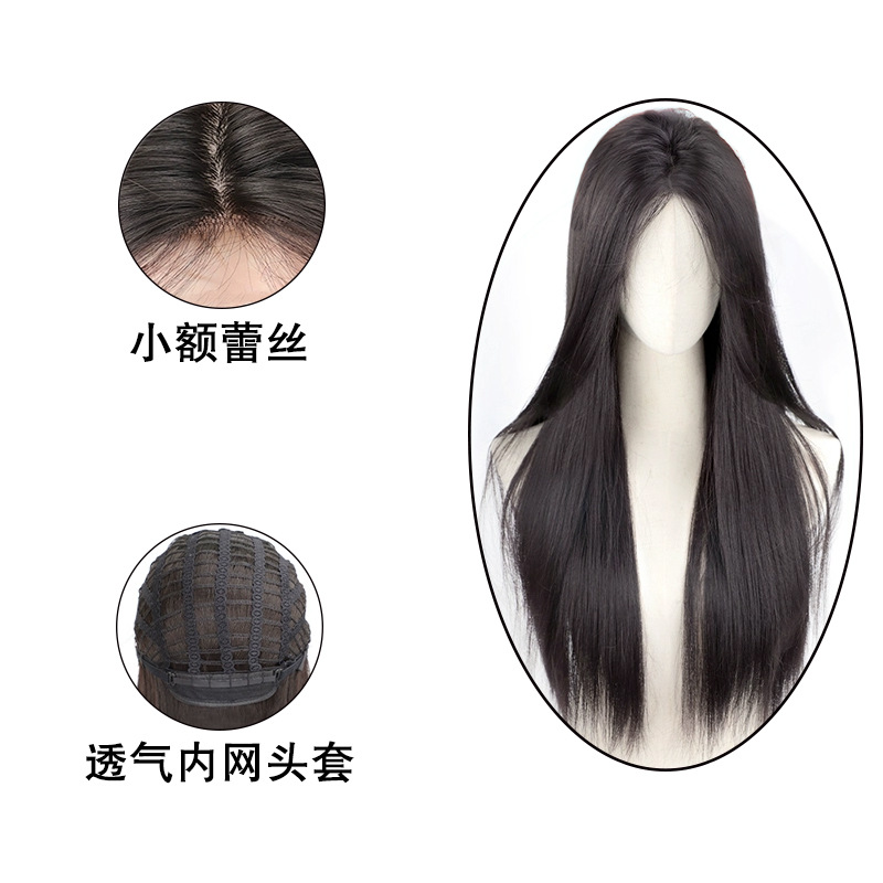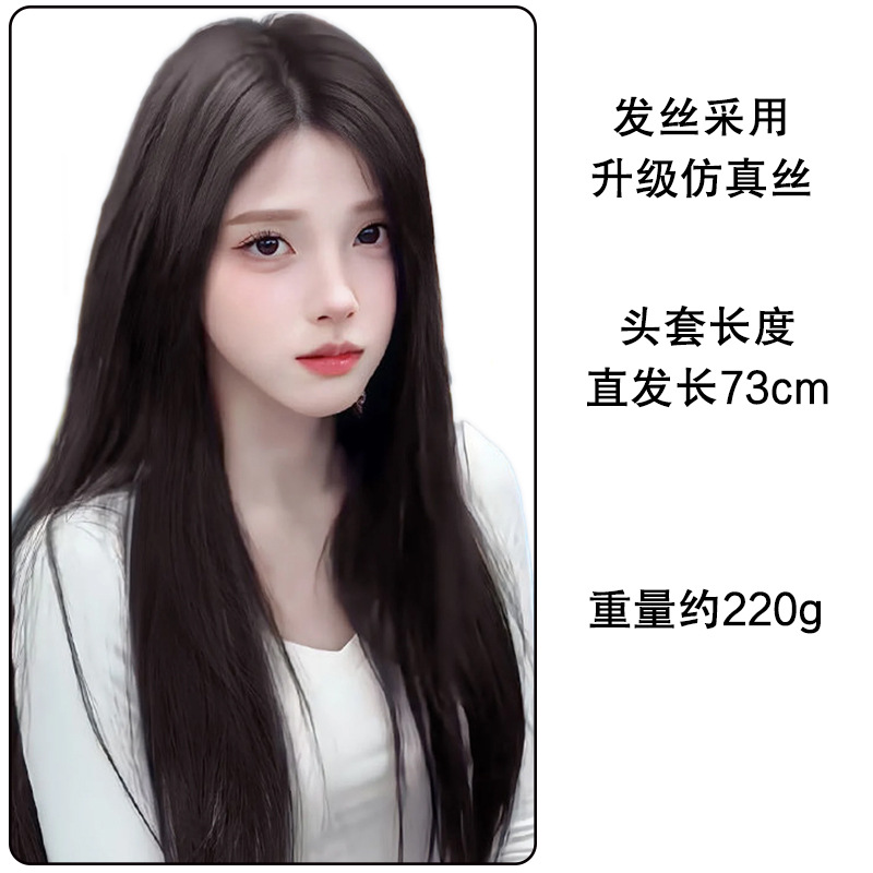 Whole Top Wig Headgear Black Long Straight Hair Natural Elegant Synthetic Upgraded Imitation Silk Wig Mid-split Headgear Wig