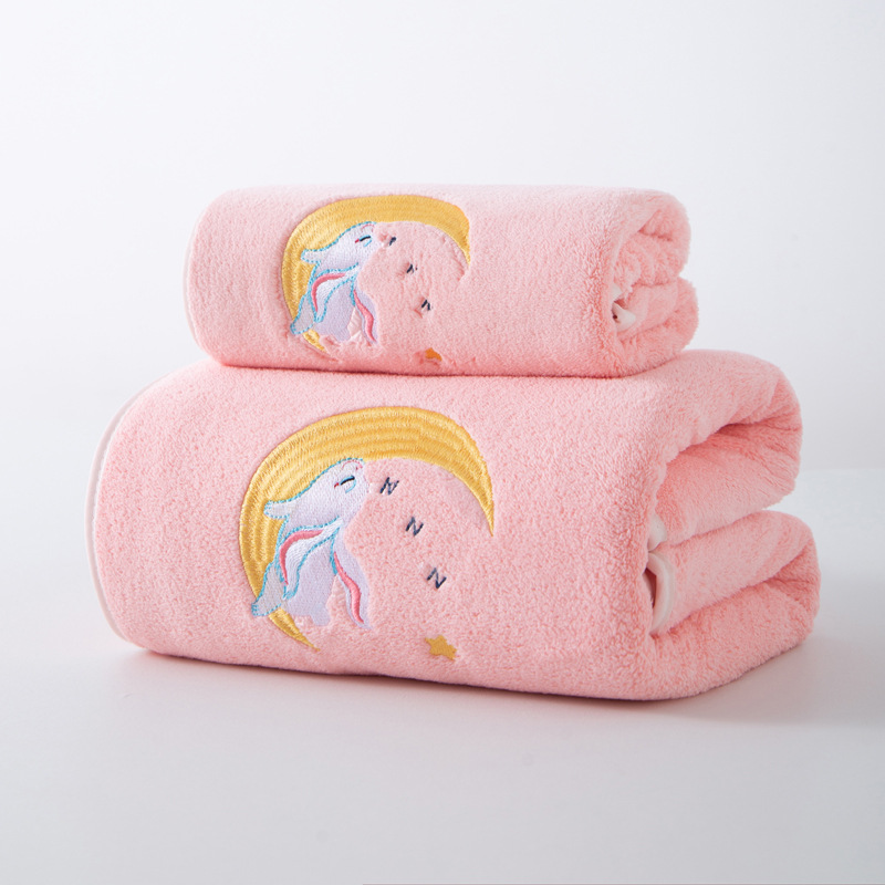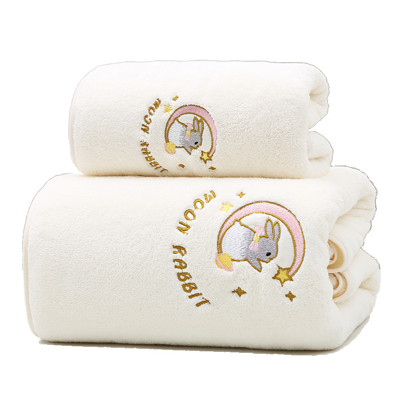 Wholesale bath towel female coral fleece thickened adult absorbent household non-pure cotton beach towel high-end bath towel embroidered moon rabbit