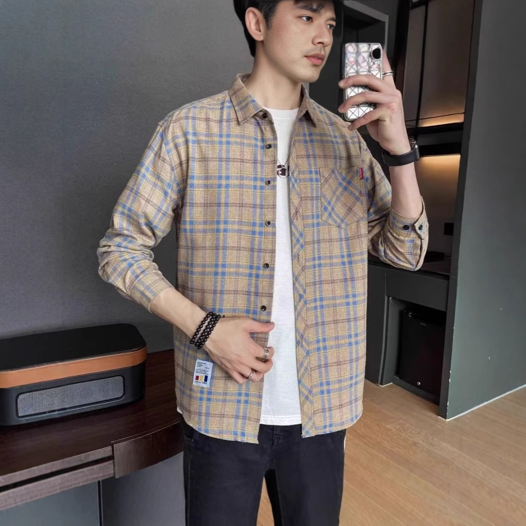 Wholesale Men's Shirts Spring Japanese Style Trendy Loose Long-Sleeve Plaid Workwear Plus Size Shirts Trendy Men