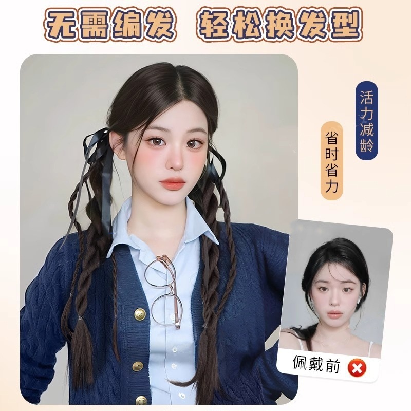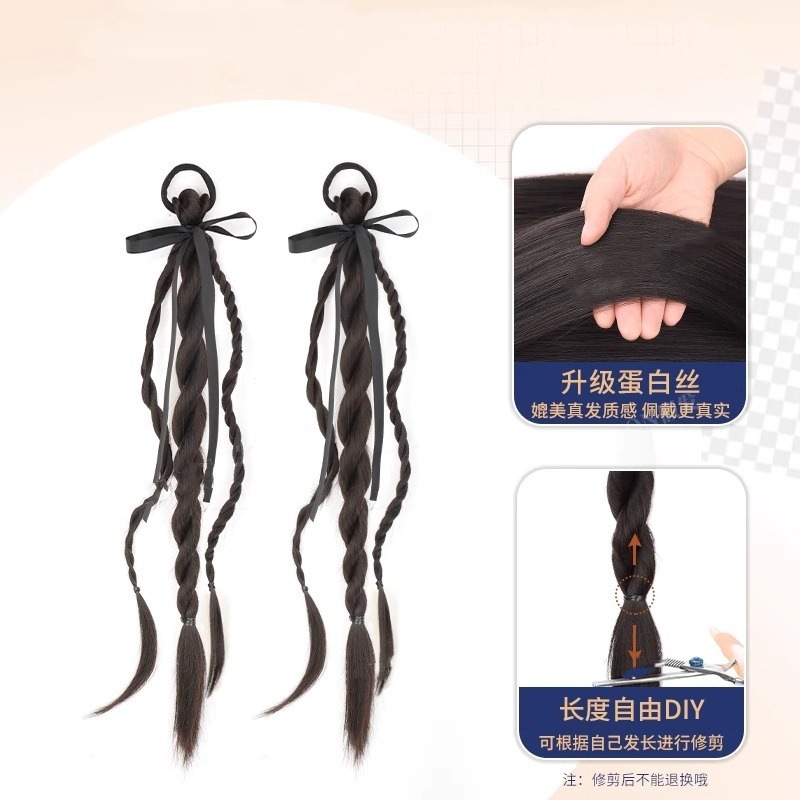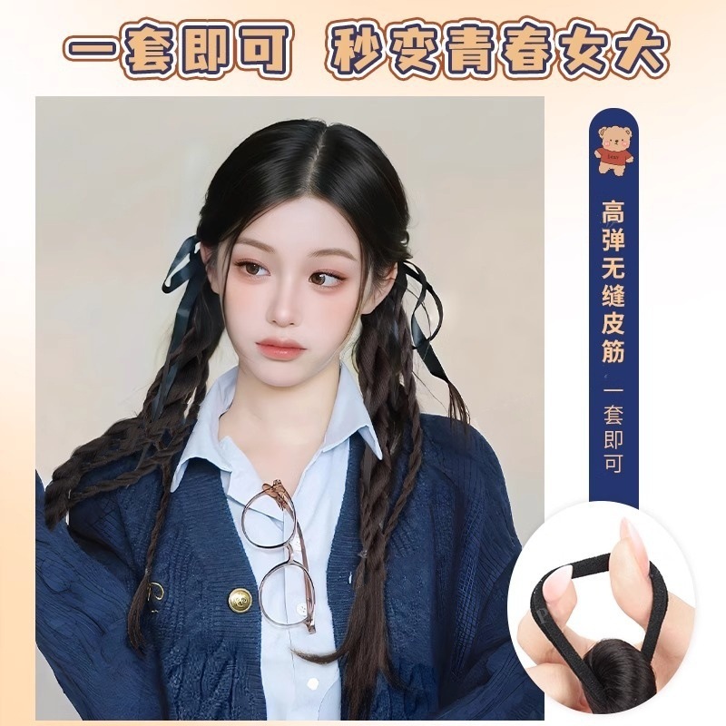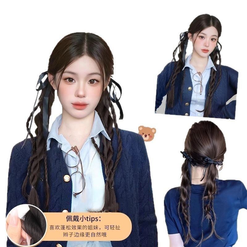 Wig Braid Bear Twist Braid Wig Braid Preppy Style Double Twist Ribbon Artificial Ballet Hair Wig Ponytail