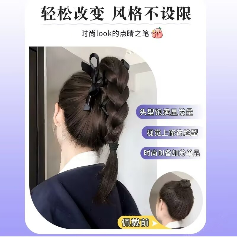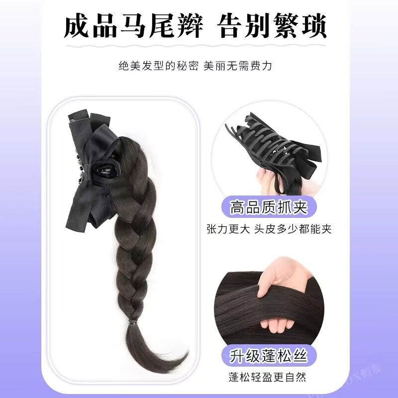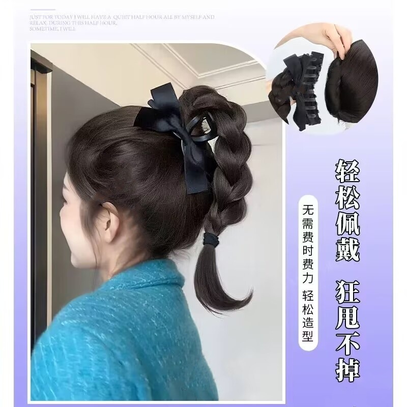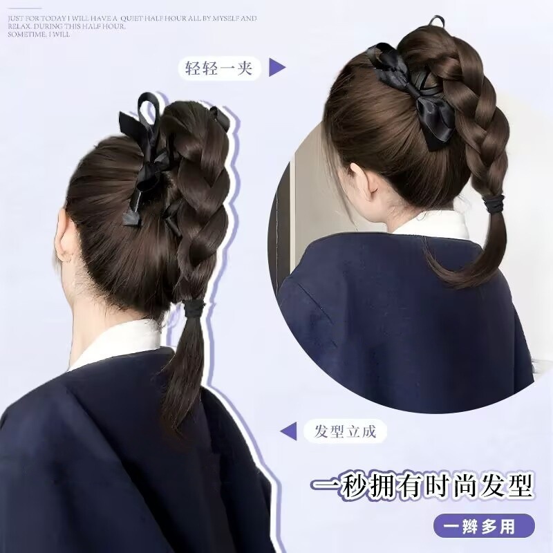Wig Braid Children's High ponytail Bow Grab Clip Braid Artificial New Chinese Half-Tie Natural Fluffy Braid